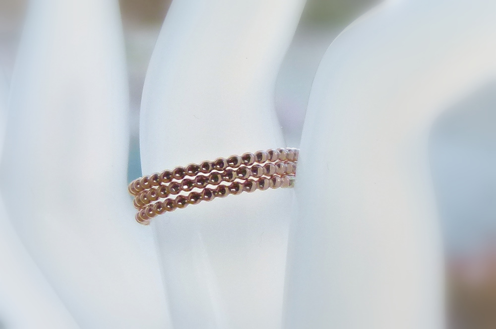 Three 14k Rose Gold Filled Stacking Rings made with 14GA wire (1.5mm at the wides point). This is a set of FULL beaded / dotted bands.