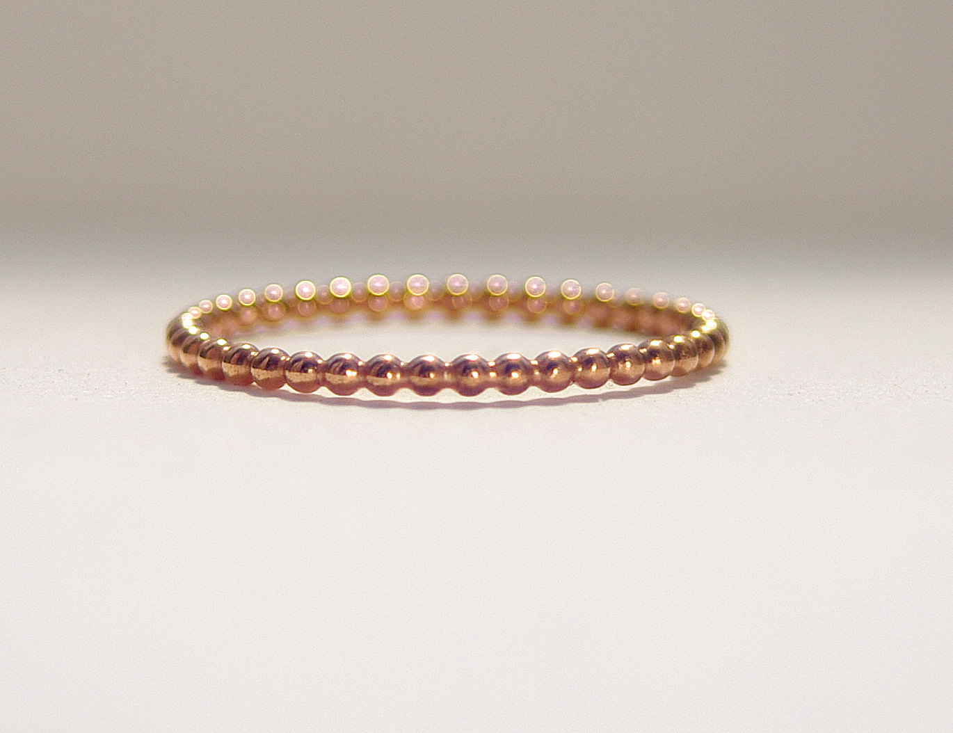 One 1.5mm 14k ROSE gold filled beaded / dotted stackable / stacking / stack handmade ring or wedding band