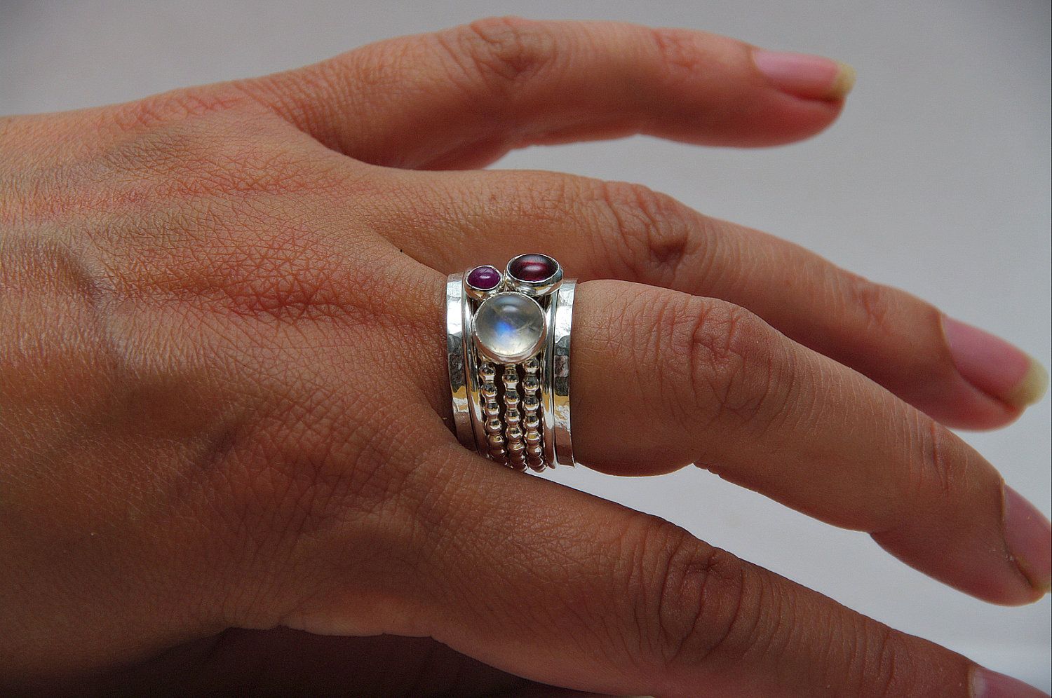 Pink Tourmaline Gemstone, Ruby Gemstone, Rainbow Moonstone Gemstone Birthstone Rings/ Mothers Rings/ Silver Stacking Rings /Stackable Rings