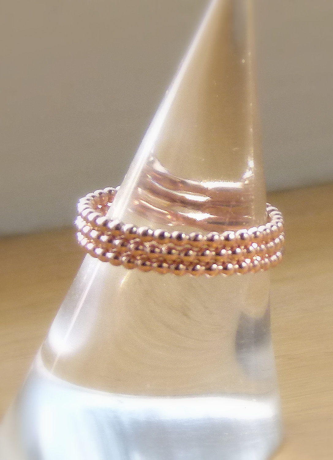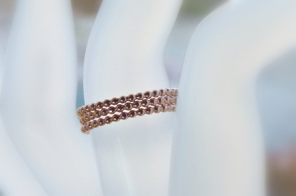 Three 14k Rose Gold Filled Stacking Rings made with 14GA wire (1.5mm at the widest point). This is a set of FULL beaded / dotted bands.