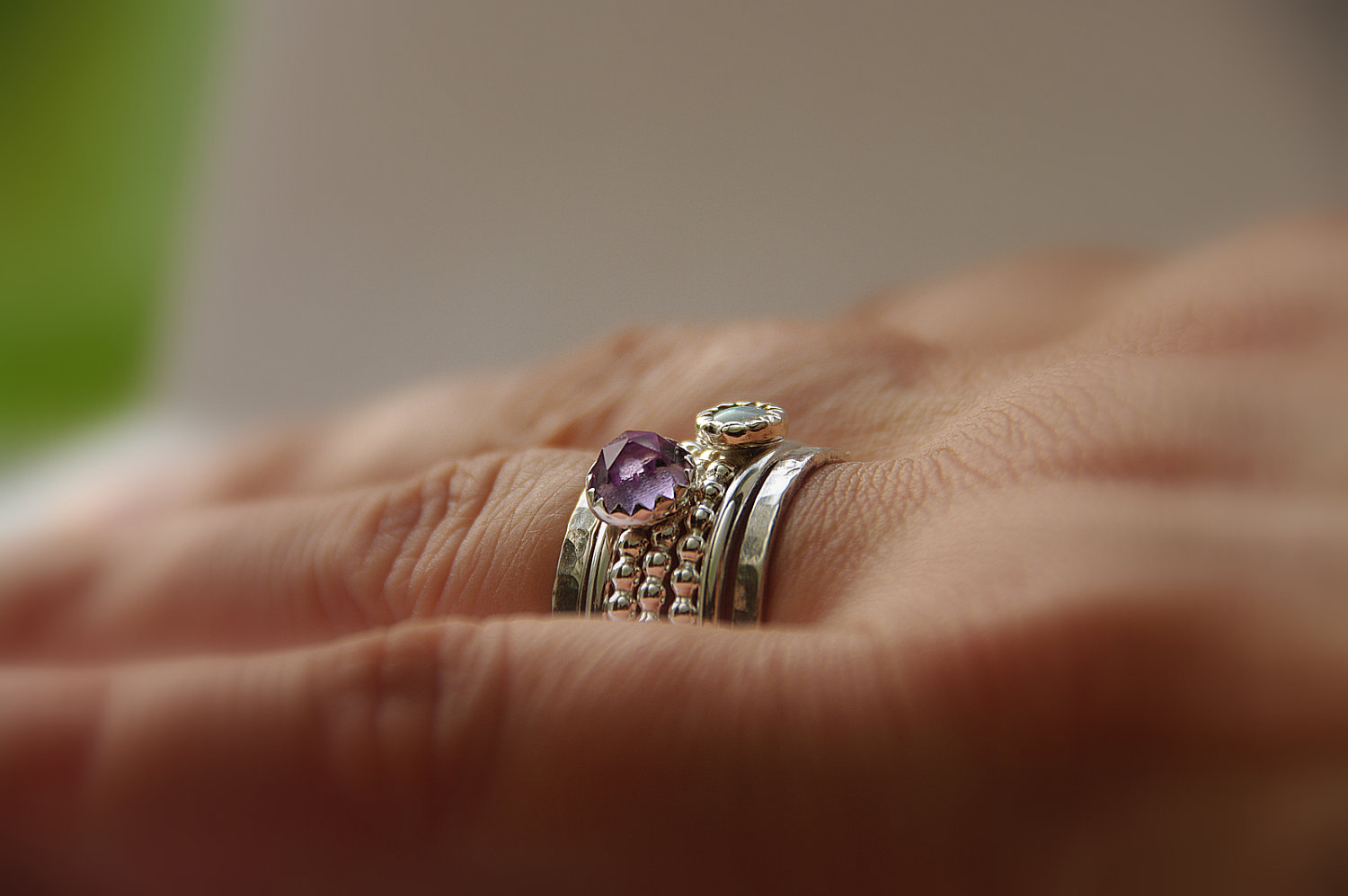 Opal & Amethyst Stackable Birthstones Mothers rings - Personalized Rings